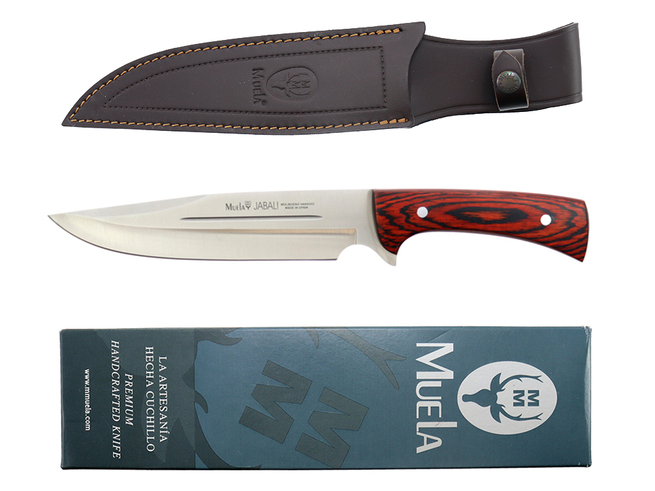 Rodzaj stali: X50CrMoV15 Długość głowni: 210 mm Grubość głowni: 4.5 mm Długość całkowita: 342 mm Waga: 400 gramów Producent: Muela, Hiszpania Kod producenta: JABALI-21E