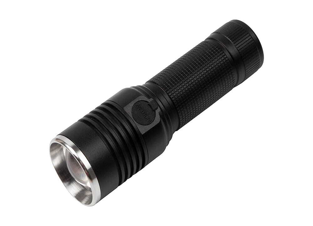 Latarka wykonana została z mocnego i trwałego aluminium odpornego na uszkodzenia. Dzięki zastosowaniu uszczelek typu O-ring jest odporna na kurz oraz wilgoć.