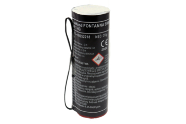 Efekt: fontanna Czas palenia: około 25 sekund Efekt: wysoka intensywna emisja iskier Wysokość tuby: 105 mm Opakowanie: 1 sztuka Producent: Triplex Polska Zawartośc NEC: 12 gram na sztukę Certyfikat: CE F2