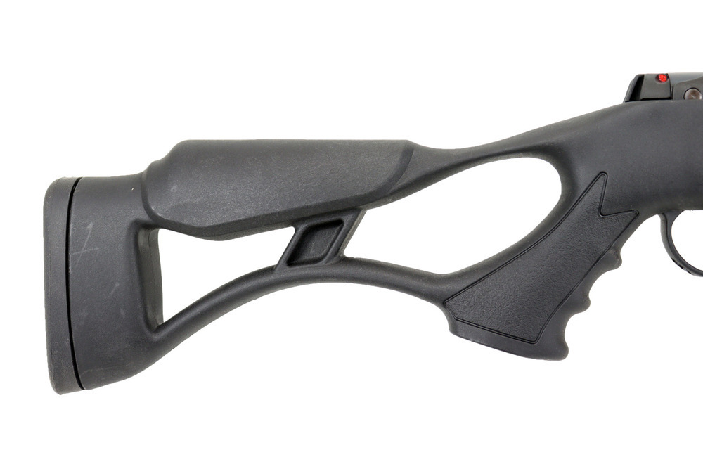 Niewielka waga, bardzo dobre wyważenie oraz uniwersalna obustronnie profilowana kolba z otworem kciukowym to główne zalety tego modelu.