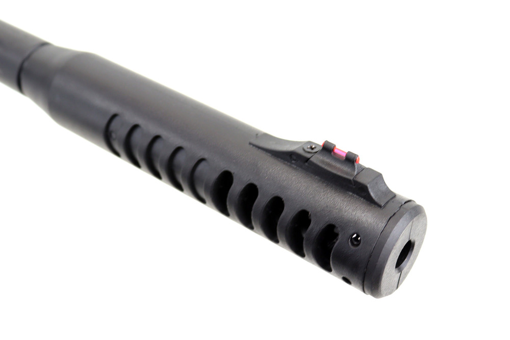 Stalowa gwintowana lufa umieszczona w polimerowej obudowie obniża masę karabinka, a zintegrowany kompensator strzału poprawia celność strzelania.