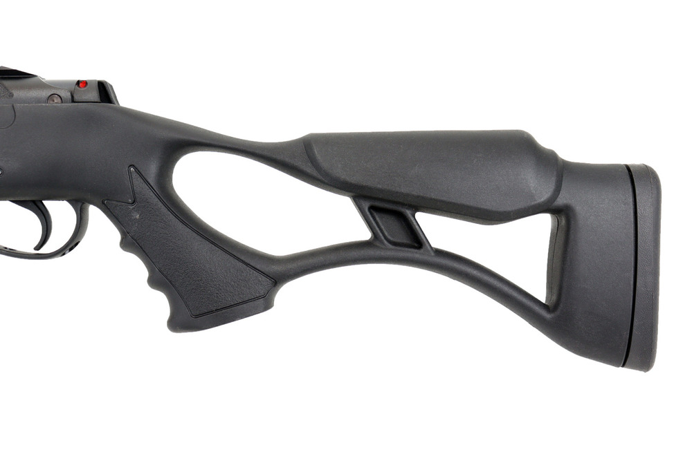 Niewielka waga, bardzo dobre wyważenie oraz uniwersalna obustronnie profilowana kolba z otworem kciukowym to główne zalety tego modelu.