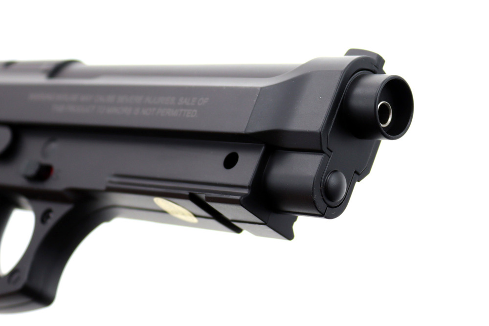 Oznaczenie prod.: Borner 92 Zasilanie: 1 x 12g nabój CO2 Kaliber: 4,5 mm (.177) Typ śrutu: Kulka stalowa BB 4,46 mm Energia początkowa: Poniżej 17 J Magazynek: 18 sztuk stalowych kulek BB's Prędkość początkowa: 120 m/s Długość całkowita: 215 mm Długość lufy: 140 mm Materiał: metal/ABS Waga: 435 gram
