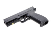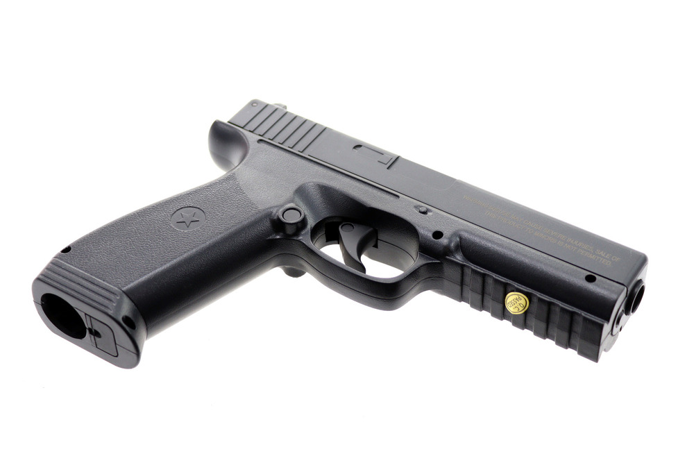 Pistolet wykonany w części z ABS-u a w części z metalu. Profilowana rękojeść wygodnie układa się w dłoni i zwiększa pewność chwytu. Strzela wyłącznie stalowymi kulkami 4,5mm (dokładnie 4,46mm) - nie wolno stosować amunicji ołowianej! Podłużny, metalowy magazynek jest klasycznie wsuwany od dołu w rękojeść pistoletu, obok komory na nabój CO2. Magazynek zwalniany jest przyciskiem umieszczonym z lewej strony rękojeści przy kabłąku.