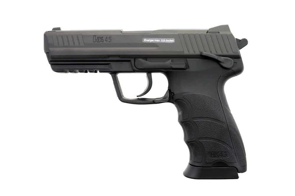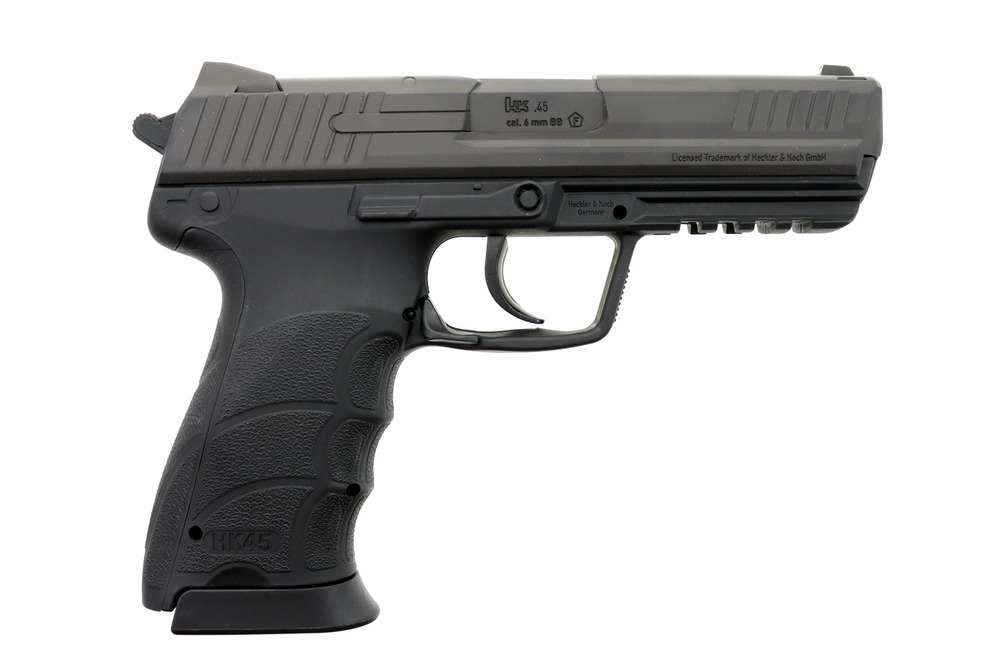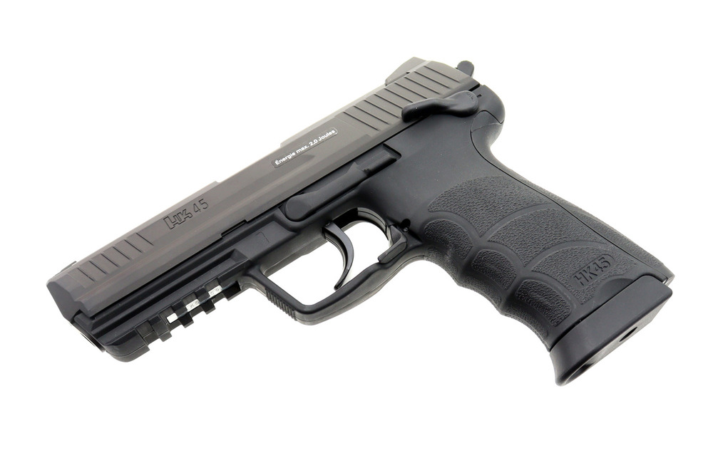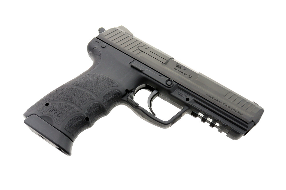 Heckler & Koch HK45 6 mm to precyzyjna replika CO2 o metalowym zamku, systemie hop-up zwiększającym celność oraz prędkości początkowej osiągającej 460 fps.