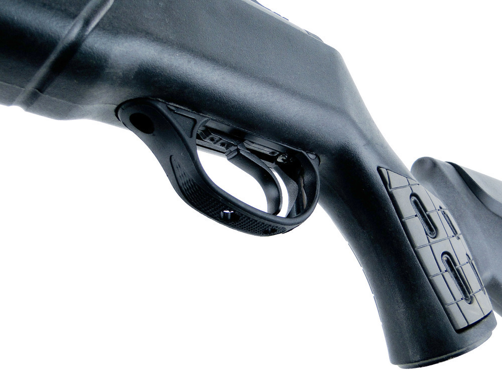 Automatyczny bezpiecznik - umieszczony w tylnej części cylindra wiatrówki chroni przed oddaniem niekontrolowanego strzału. Takie umiejscowienie pozwala na intuicyjną obsługę bezpiecznika kciukiem. Przed oddaniem strzału należy wcisnąć bezpiecznik co spowoduje zwolnienie blokady spustu, (każdorazowe naciągnięcie sprężyny wiatrówki powoduje automatyczne jego zadziałanie).