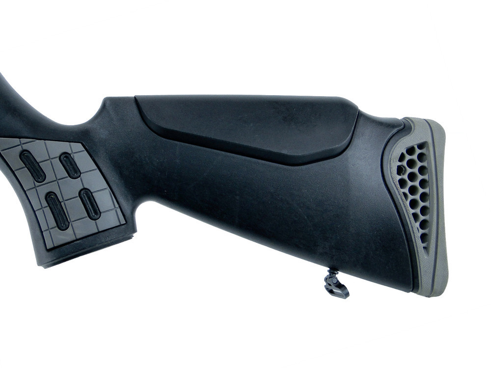 Wiatrówka Hatsan 125 Sniper to model z polimerową kolbą wyposażony w klasyczne światłowodowe przyrządy celownicze oraz w automatyczny bezpiecznik spustu.