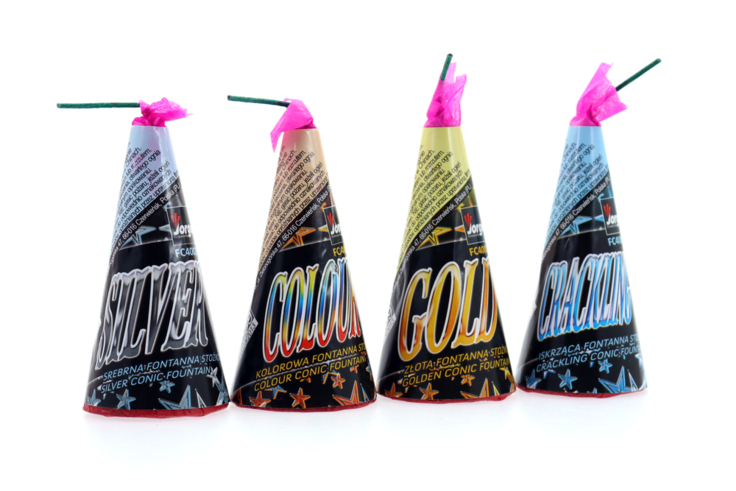 Efekt: kolorowa fontanna Czas palenia: około 22-25 sekund Efekty: złoty, srebrny, trzaskający, wielokolorowy Średnica podstawy: 50 mm Wysokość: 100 mm Opakowanie: 1 sztuka Producent: Jorge Polska Certyfikat: CE F2 NEC: 160 gram . 4 sztuki