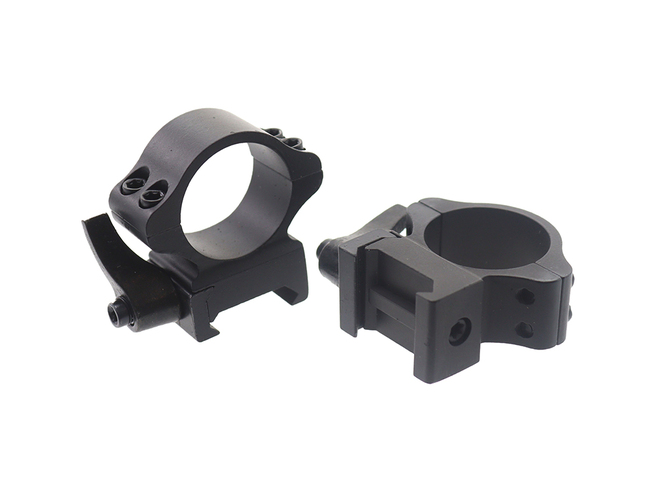 Posiada 4 śruby typu thorx mocujące każdą obejmę do lunety (w sumie 8 śrub) oraz 2 śrub mocujących lunetę z wygodnym systemem szybkiego zakręcania i odkręcania bez użycia kluczy.