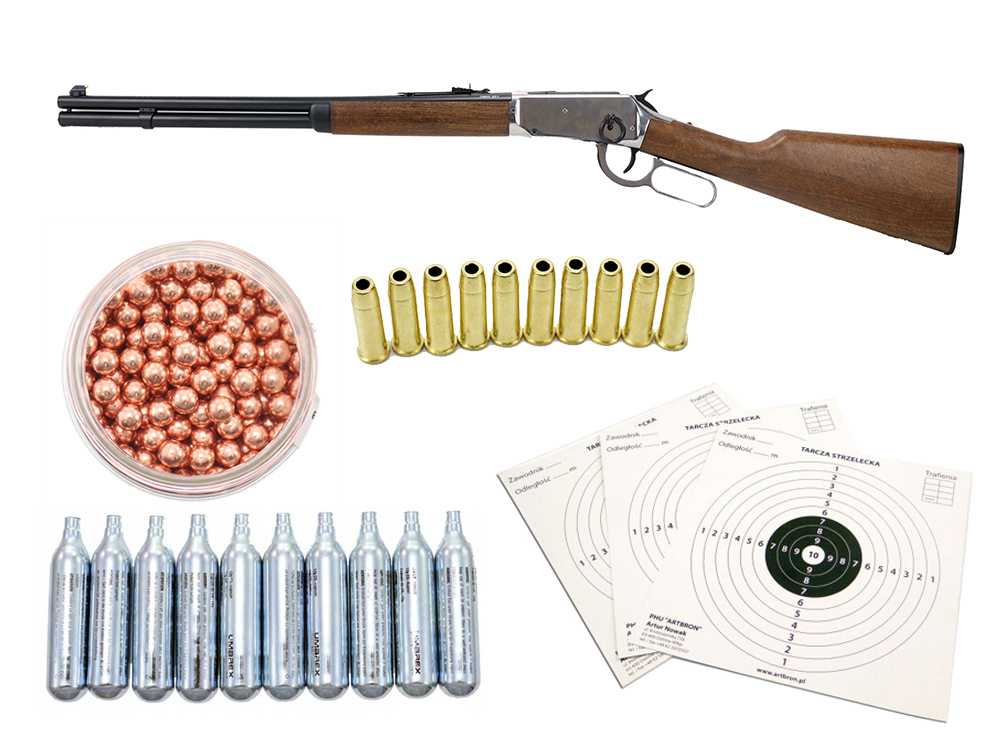 Legends Cowboy Rifle 4,5 mm srebrna to wiatrówka CO2 o inspiracji zachodnim stylem, wzorowana na słynnym karabinku Winchester. Dzięki niej możemy na chwilę poczuć się jak bohater westernu, korzystając z repliki broni, która odegrała istotną rolę w historii Dzikiego Zachodu.