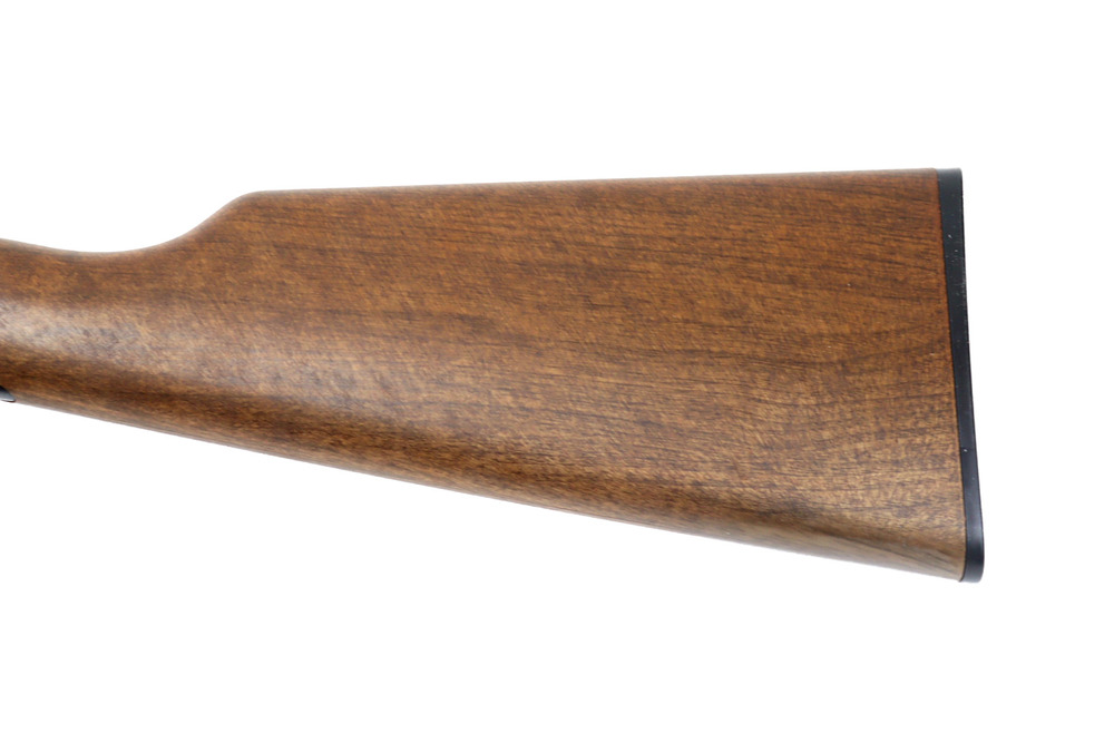 Wiatrówka Legends Cowboy Rifle doskonale łączy nowoczesną technologię z charakterystycznym klimatem karabinu Winchestera, znanego z ręcznego przeładowywania za pomocą dźwigni. Jej konstrukcja opiera się głównie na metalu, obejmując lufę, magazynek, komorę zamkową, dźwignię przeładowania, mechanizm spustowy i celownicze elementy. Kolba i chwyt, wykonane z polimeru imitującego drewno, dodają karabinkowi klasycznego wyglądu, a srebrne wykończenie komory zamka nadaje mu elegancji.