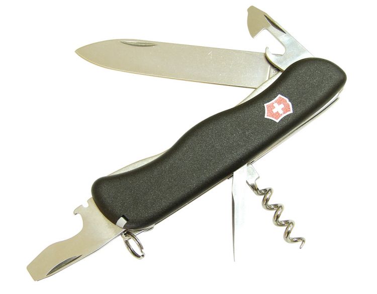 Oryginalny szwajcarski scyzoryk charakteryzujący się długim blokowanym ostrzem oraz profilowaną rękojeścią z matowego nylonu.