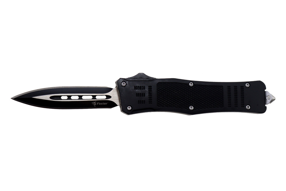 Nóż sprężynowy typu OTF (wysuwane ostrze od frontu), które automatycznie wysuwa się i chowa w rękojeści.
