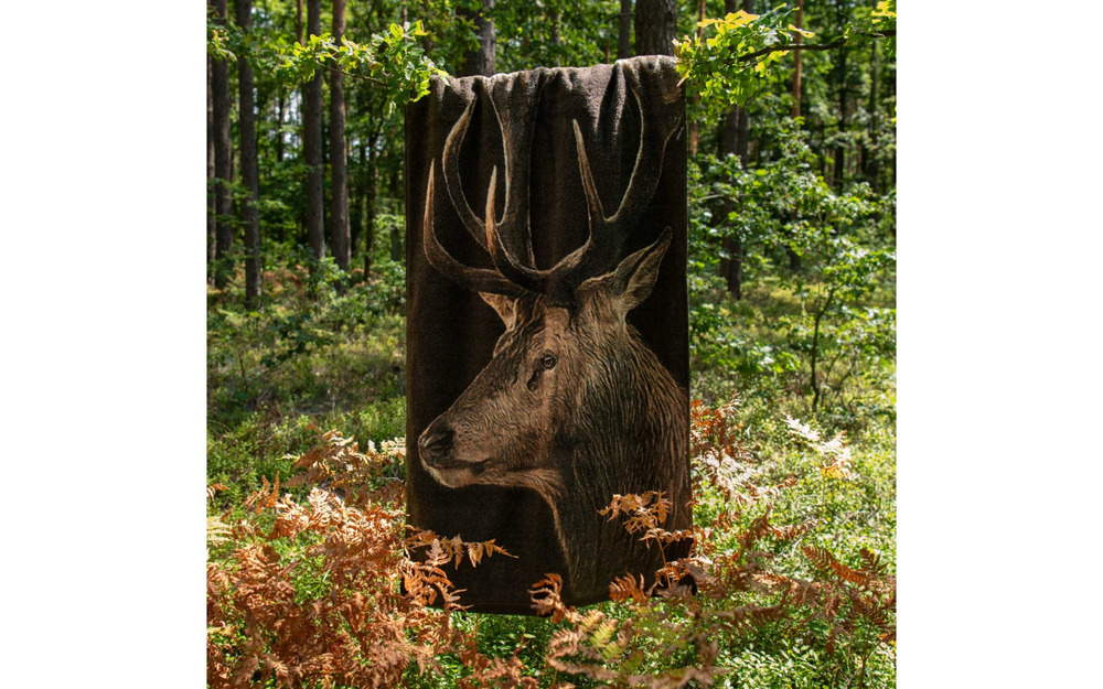 Ręcznik JELEŃ z kolekcji inspirowanej przyrodą wyróżnia się realistycznym nadrukiem przedstawiającym majestatycznego króla lasu. Dzięki technologii cyfrowego druku pigmentowego wzór zachowuje intensywność kolorów i precyzję detali nawet po wielu praniach, nie tracąc swojej estetyki.