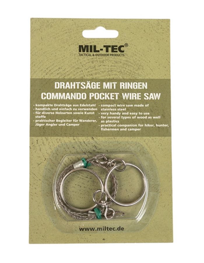 Lekka i kompaktowa piła drutowa ze stali nierdzewnej o długości ok. 52 cm i wadze 25 g. Niezastąpione narzędzie dla turystów, myśliwych i survivalowców – umożliwia szybkie cięcie drewna, plastiku czy innych materiałów. Sprawdzi się zarówno w terenie, jak i podczas prac w domu.