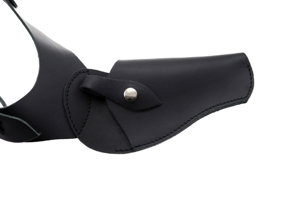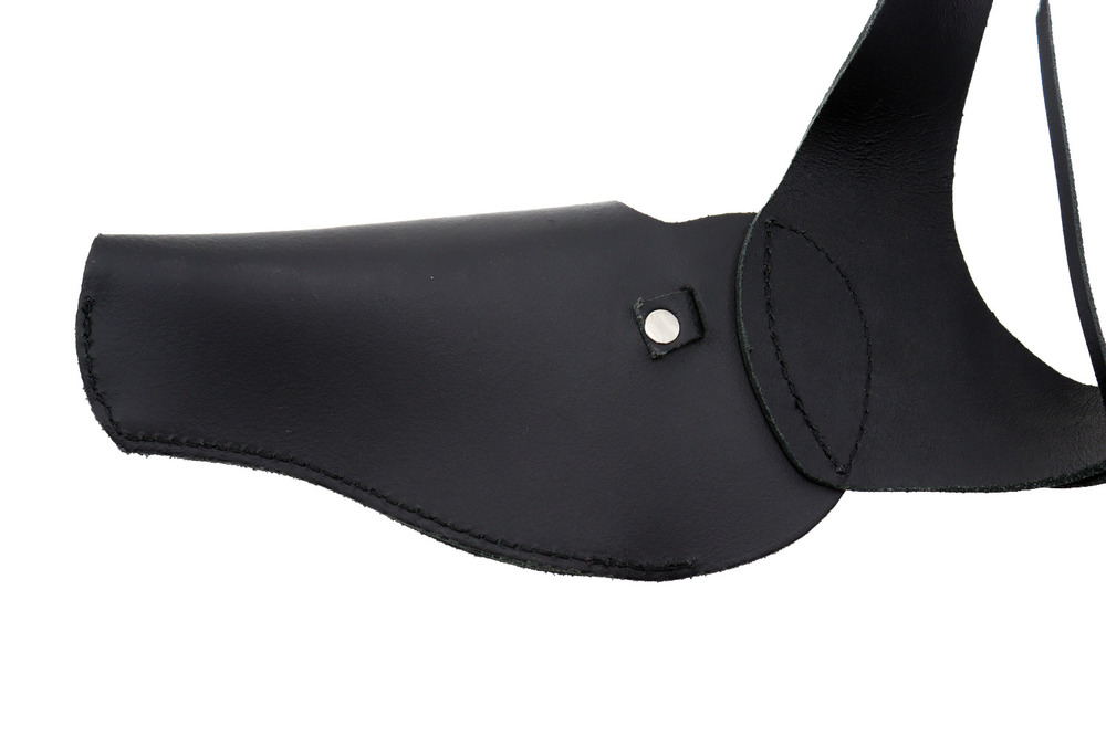 Kabura wyposażona jest w pasek z zapięciem typu nap za pomocą którego można zablokować wewnątrz rewolwer.