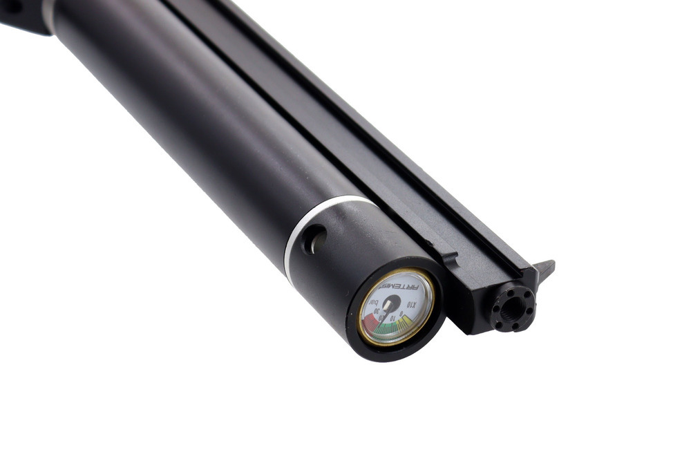 Artemis PP700 jednostrzałowy pistolet PCP który oferuje bardzo wygodny dostęp do portu ładowania śrutu. Wystarczy przesunąć w bok tylny podajnik ciśnienia i mamy bezpośredni dostęp do lufy. W tymże podajniku znajduje się śruba regulacyjna pozwalająca na ograniczenie prędkości początkowej poniżej 7 Jouli a tym samym znaczący wzrost ilości oddanych strzałów z jednego ładowania kartusza.