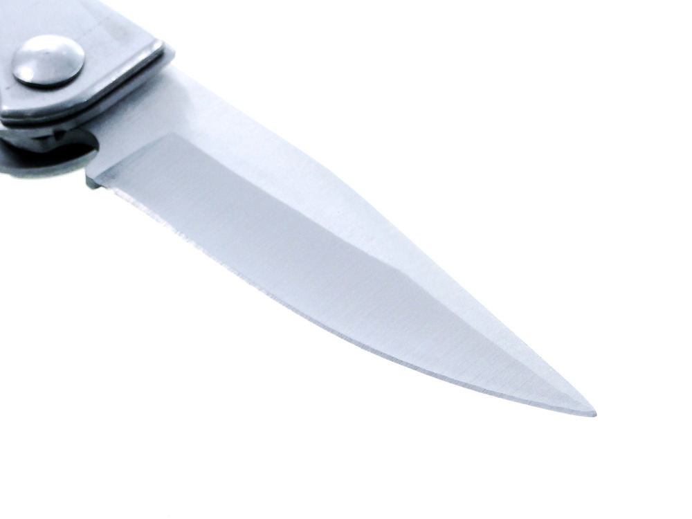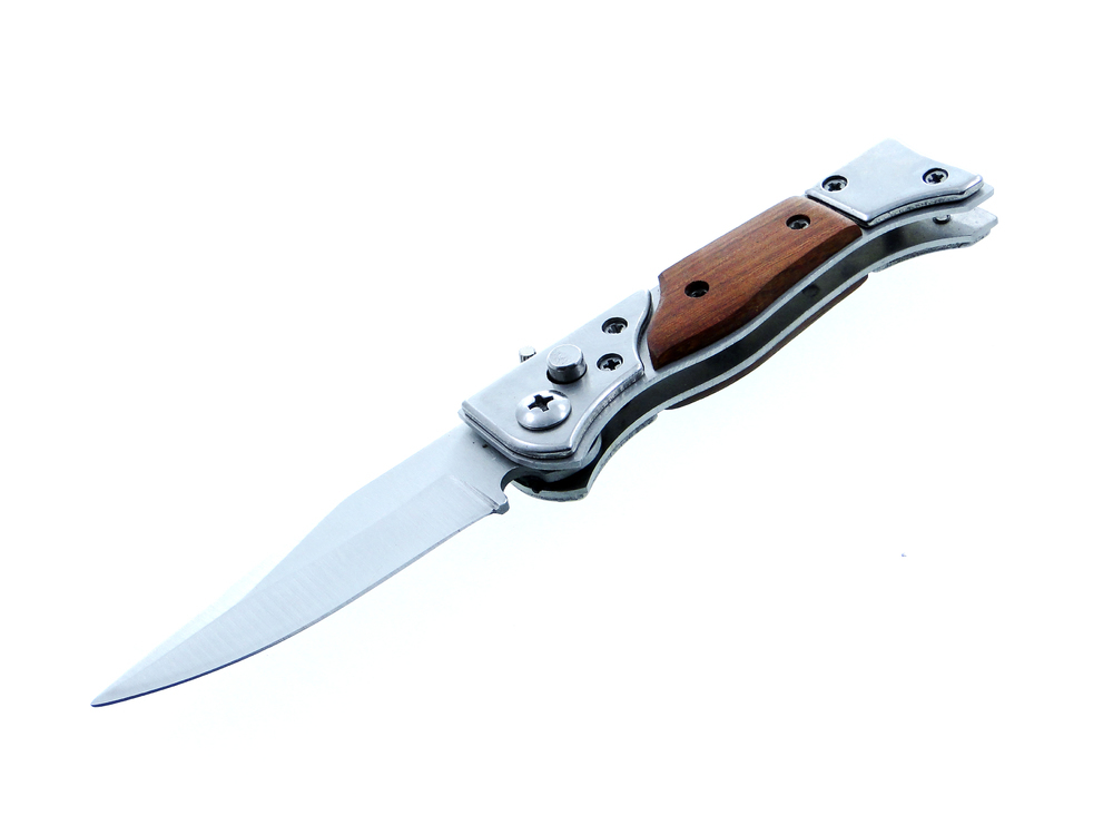 Bagnet otwiera się przy pomocy przycisku po lewej stronie noża oraz posiada blokadę zapobiegającą przypadkowemu otworzeniu lub zamknięciu.
