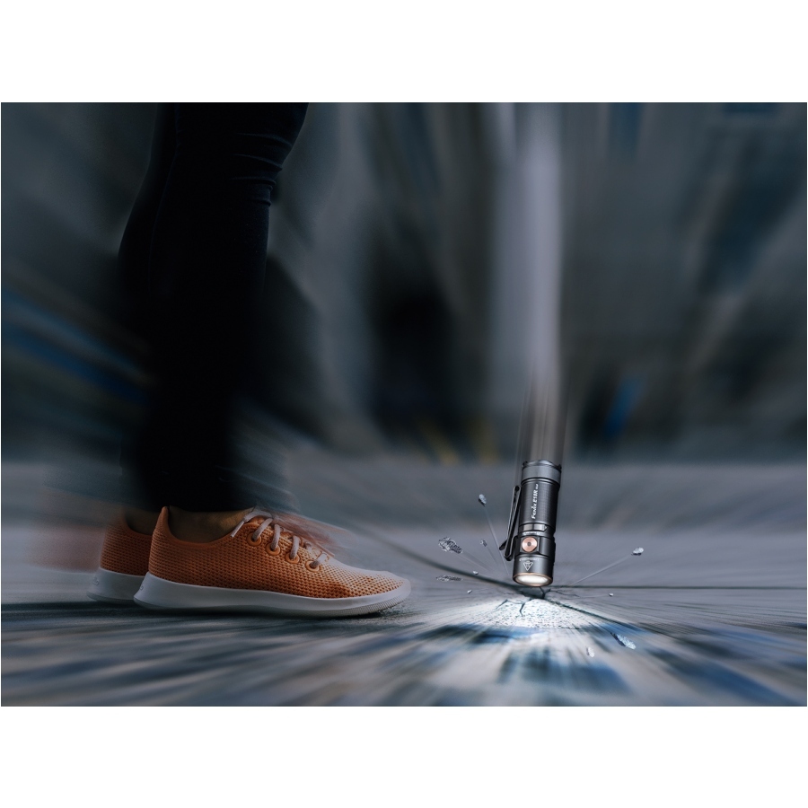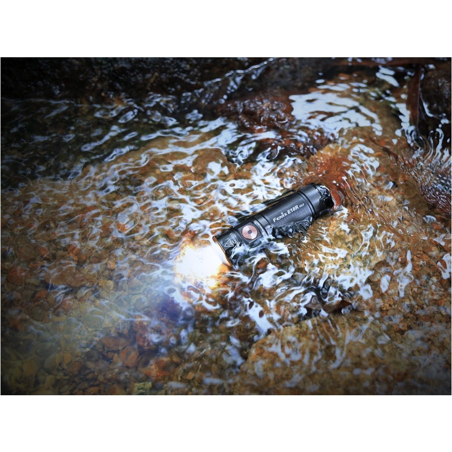 Fenix E18R V2.0 spełnia rygorystyczne normy IP68, co oznacza pełną odporność na kurz, pył, deszcz, a także zanurzenie w wodzie do 2 metrów przez 30 minut. Latarka wytrzymuje również upadki z wysokości 1 metra, dzięki czemu możesz mieć pewność, że nie zawiedzie w żadnej sytuacji.