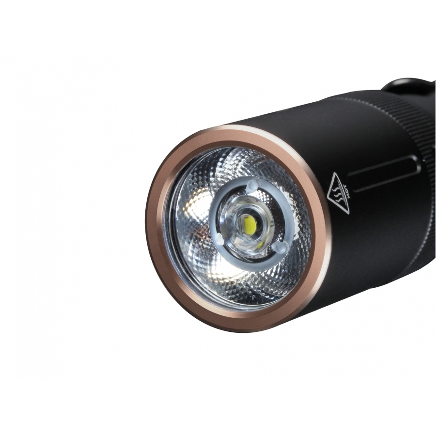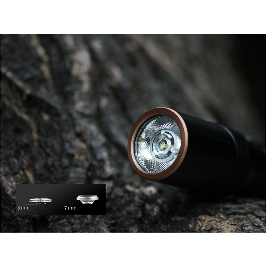 Źródłem światła jest nowoczesna dioda SST20, oferująca neutralną barwę światła, która wiernie oddaje kolory otoczenia i zmniejsza zmęczenie oczu podczas dłuższego użytkowania. Zastosowana soczewka kolimacyjna Al+UV o grubości 3 mm zapewnia szeroki kąt świecenia (85°) i minimalne straty światła, dzięki czemu Fenix E20 V2.0 doskonale sprawdza się zarówno w pomieszczeniach, jak i w terenie.