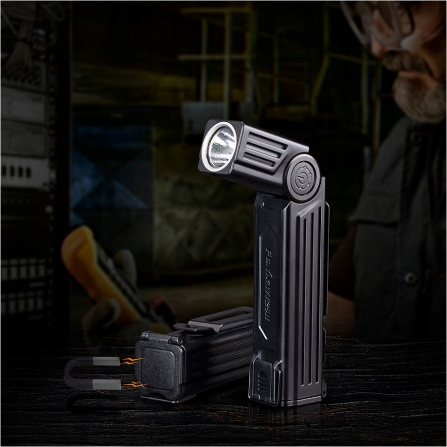 Fenix WT25R to profesjonalna latarka kątowa stworzona do pracy w wymagających warunkach — idealna dla techników, mechaników, ekip serwisowych oraz użytkowników outdoor. Moc 1000 lumenów i zasięg do 220 metrów, generowane przez diodę Cree XP-L HI, zapewniają doskonałą widoczność zarówno przy pracy z bliska, jak i przy oświetlaniu dużych przestrzeni.