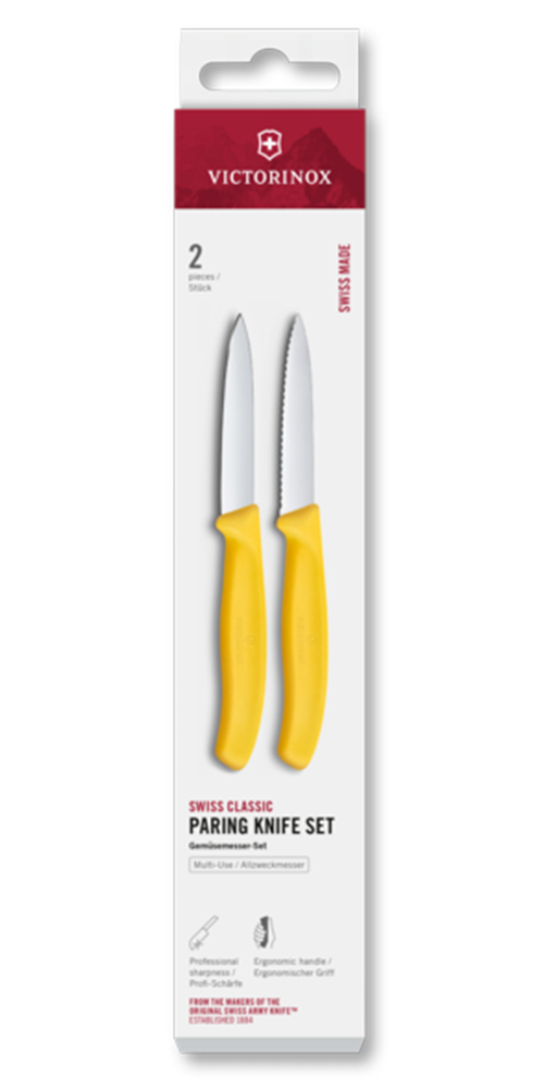 Zestaw 2 noży gładki i ząbkowany 8cm Victorinox Swiss Classic żółty