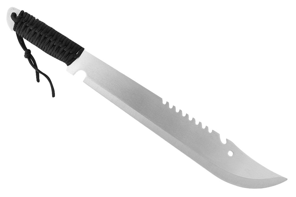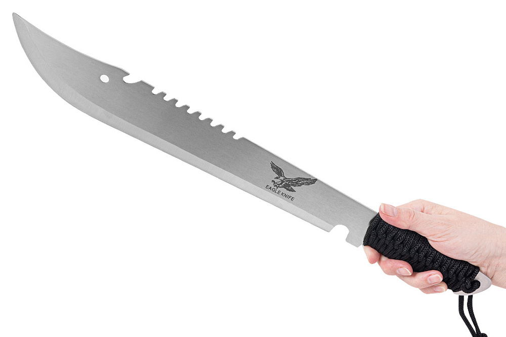Wielka, solidnie wykonana maczeta to niezastąpione narzędzie do karczowania, rąbania i przecinania zarośli. Doskonale sprawdzi się podczas przepraw terenowych, budowy obozowiska, prac ogrodowych oraz wielu innych zadań wymagających siły i precyzji.