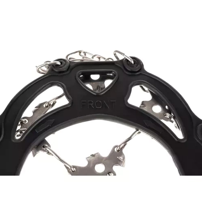 Solidne łańcuszki i kolce ze stali nierdzewnej gwarantują odporność na korozję oraz pewny chwyt na śniegu i lodzie. Elastyczny kołnierz pozwala szybko i bezproblemowo założyć raczki, a ich konstrukcja nie niszczy obuwia.