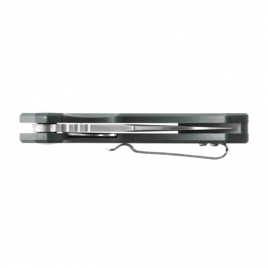 Rękojeść z tworzywa G10 zapewnia pewny chwyt, a jej tekstura i profilowanie gwarantują wygodę nawet przy dłuższym użytkowaniu. Całość uzupełnia stalowy klips do noszenia noża w kieszeni oraz otwór na linkę lub paracord, zwiększający funkcjonalność w terenie.