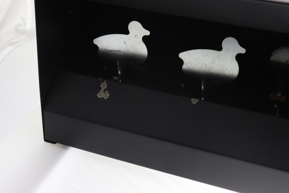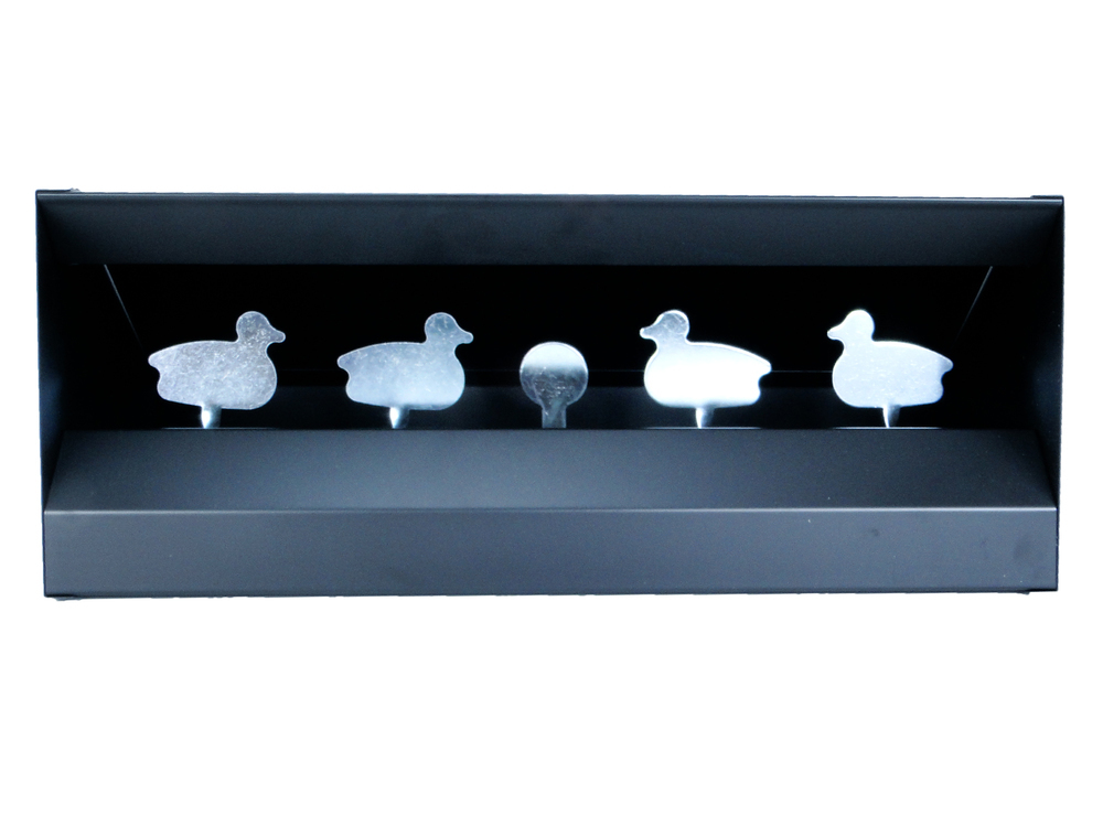 Po trafieniu kaczka zostaje wywrócona i przytrzymana przez magnes.