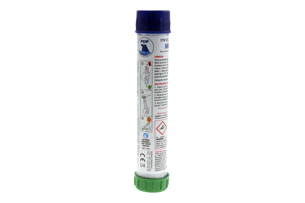 Efekt: gęsty dym Waga brutto: 75 gram NEC: 26 gram Wysokość: 180 mm Średnica: 33 mm Czas ekspozycji: około 50 sekund Kolor: niebieski Certyfikat CE: P1 Producent: FDF Włochy