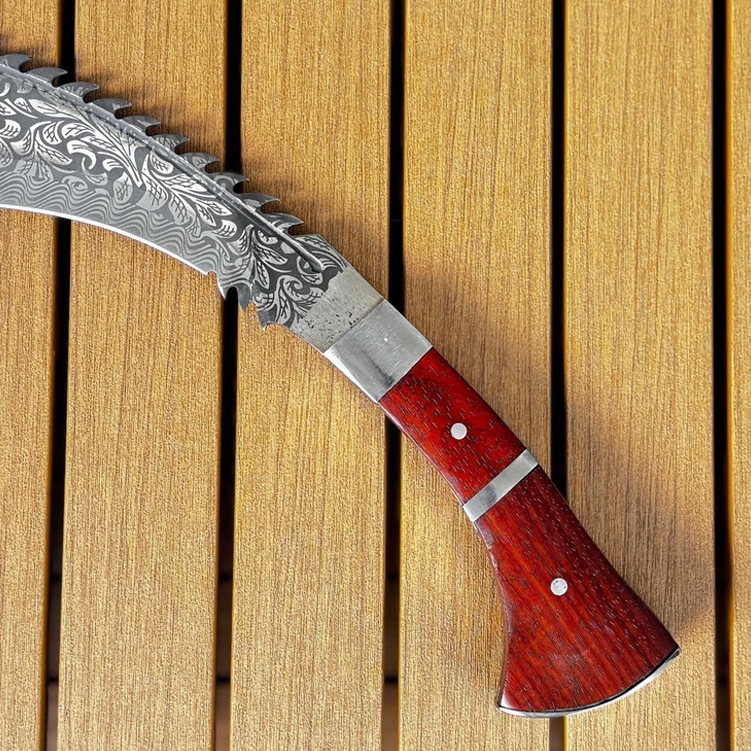 Głownia wykonana ze stali nierdzewnej posiada profil typu kukri, który zwiększa siłę cięcia i czyni maczetę wyjątkowo skutecznym narzędziem rąbiącym. Bardzo ostra krawędź tnąca gwarantuje wydajną i niezawodną pracę.