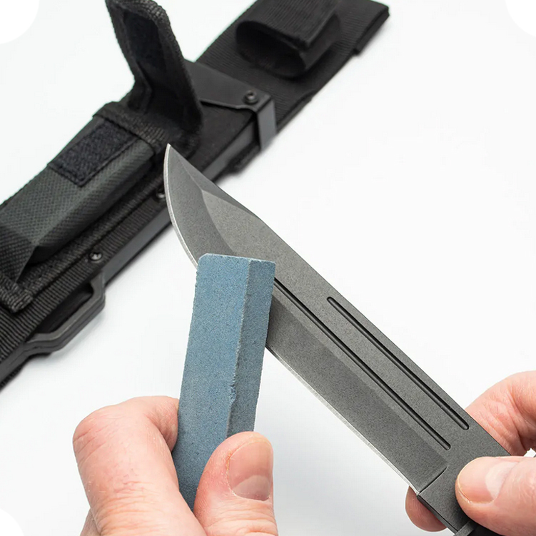 W komplecie znajduje się solidny pokrowiec wykonany z wytrzymałego polimeru i cordury, umożliwiający bezpieczne przechowywanie oraz wygodne przenoszenie noża. Zestaw uzupełnia praktyczna osełka, pozwalająca na szybkie podostrzenie ostrza w terenie.