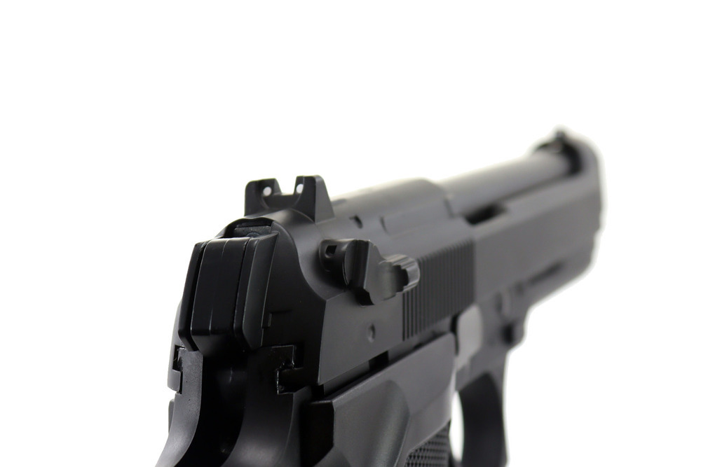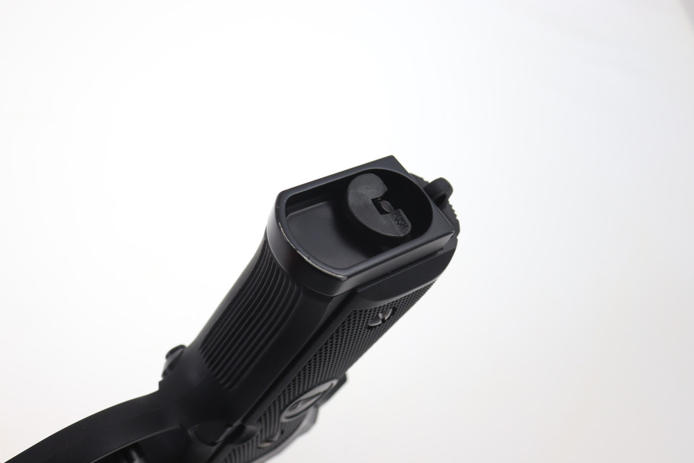 Pistolet wykonany w całości z metalu, solidny i ciężki. Rękojeść wygodnie układa się w dłoni i zwiększa pewność chwytu.
