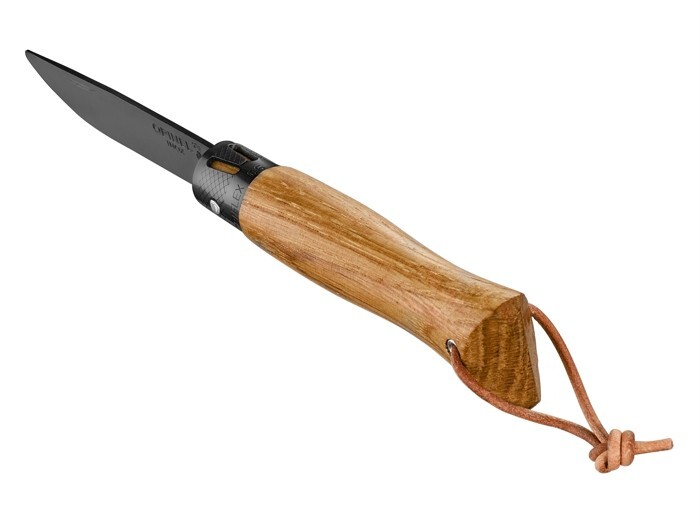 Rękojeść wykonana z lakierowanego drewna dębowego wyróżnia się naturalnym usłojeniem, dzięki czemu każdy egzemplarz ma unikalny charakter. Nóż wyposażono w innowacyjny system OPIFLEX®, który ułatwia otwieranie i zamykanie ostrza oraz poprawia komfort i bezpieczeństwo obsługi. Mechanizm zapewnia płynne działanie i pewny chwyt podczas pracy.