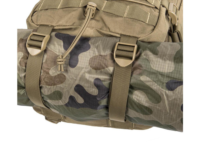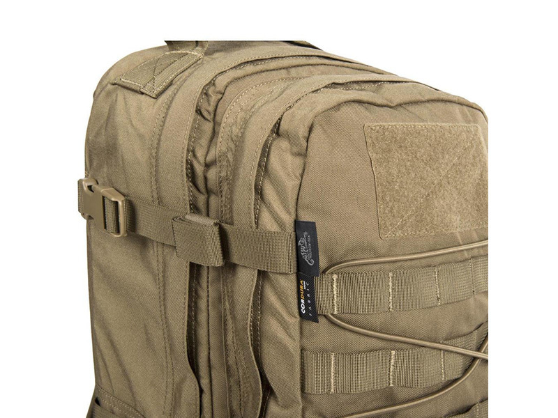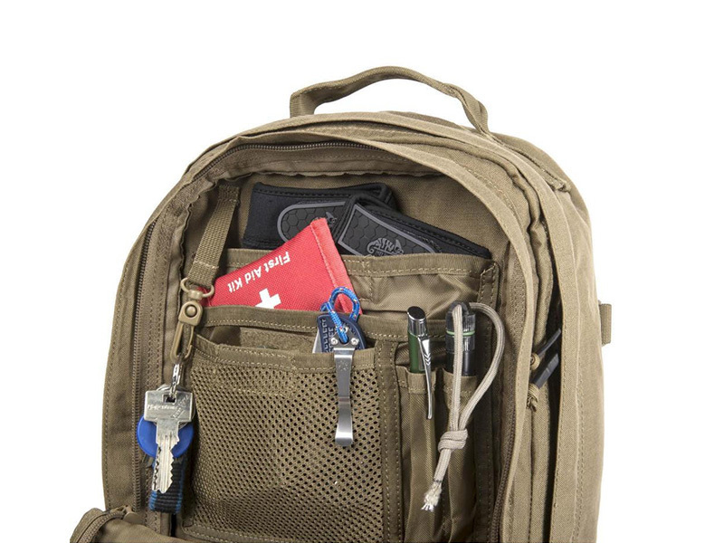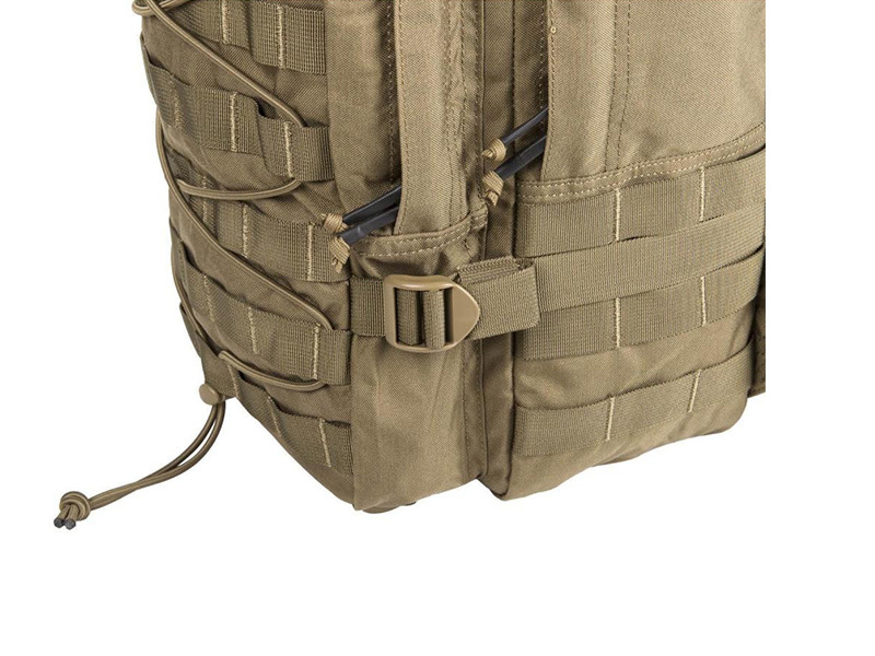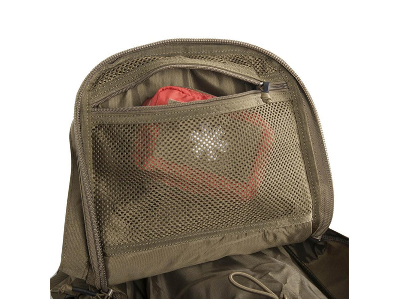 Funkcje: System PALS/MOLLE Zamki YKK® Shock cord ze stoperem Panel rzepa miękkiego dla łatwej personalizacji Wewnętrzny zapinana na suwak z organizerem na mapy, pisaki, latarki i inne akcesoria Siatkowa kieszeń wewnętrzna na drobiazgi w komorze głównej System nośny do zbiornika hydracyjnego Siatka dystansowa na panelu plecowym i szelkach poprawiająca ich oddychalność Rozpinane, regulowane szelki Demontowany pas biodrowy z taśmy Boczne i dolne troki kompresyjne Uchwyt do przenoszenia