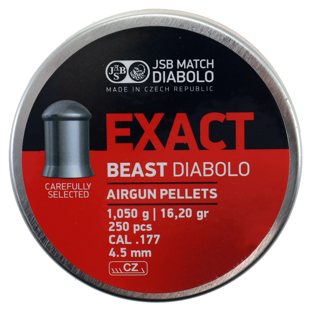 JSB Exact Beast został przygotowany w nad kalibrze 4.52 mm i jest przeznaczony do karabinków o bardzo dużej energii kinetycznej (dla 40J prędkość początkowa wynosi 270 m/s).