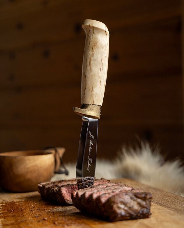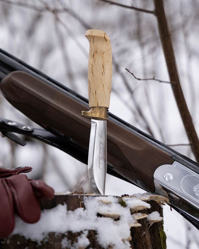 Deluxe Skinner to stylowy nóż myśliwski, który łączy klasyczną funkcjonalność z eleganckim wykończeniem. Rękojeść wykonana z woskowanej kędzierzawej brzozy nadaje mu szlachetny wygląd, a jednocześnie zapewnia pewny i komfortowy chwyt. Całość uzupełnia nierdzewne ostrze oraz skórzana pochwa, tworząc harmonijny i ponadczasowy zestaw.