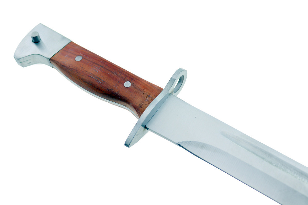 Na końcu rękojeści znajduje się mechanizm pozwalający zamocować bagnet na broń.