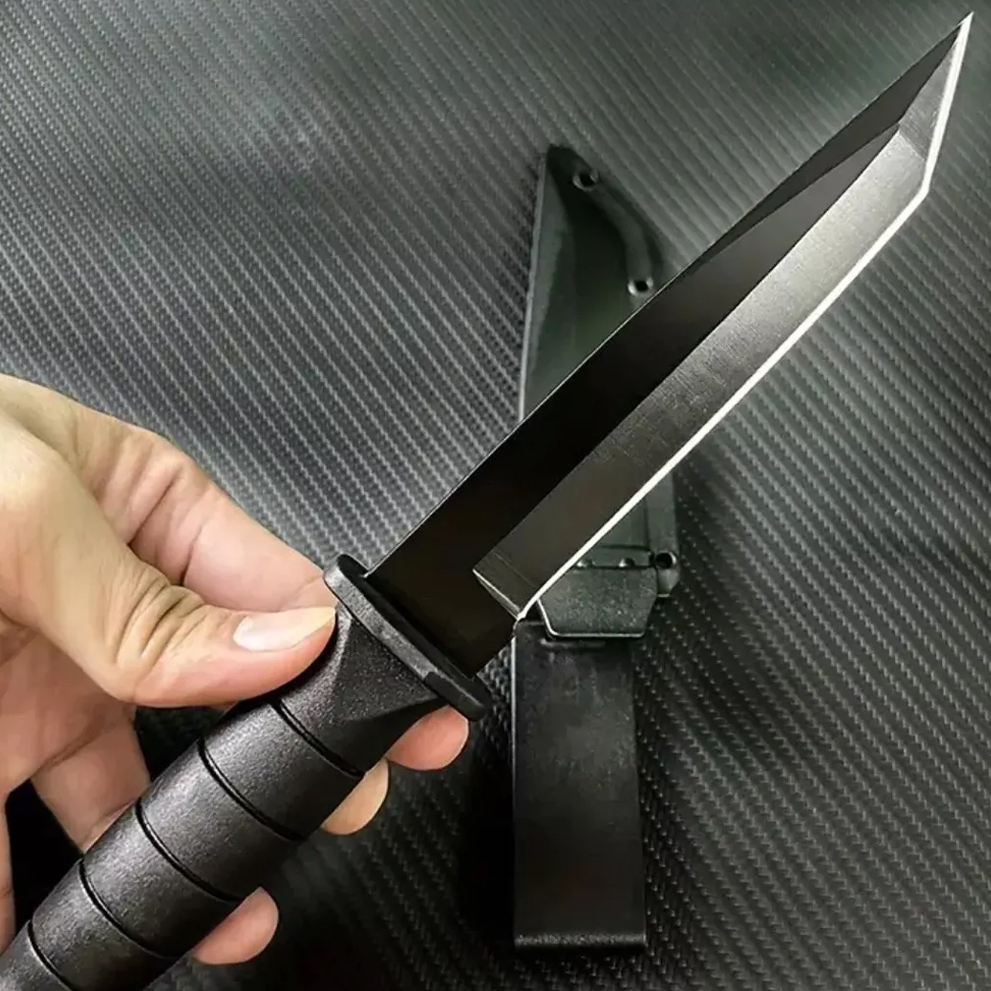 Do przenoszenia noża służy praktyczny pokrowiec wykonany z tego samego wytrzymałego polimeru co rękojeść. Wyposażony w mocny klips, który skutecznie zabezpiecza nóż przed wysunięciem się i umożliwia wygodne noszenie przy pasie lub oporządzeniu.