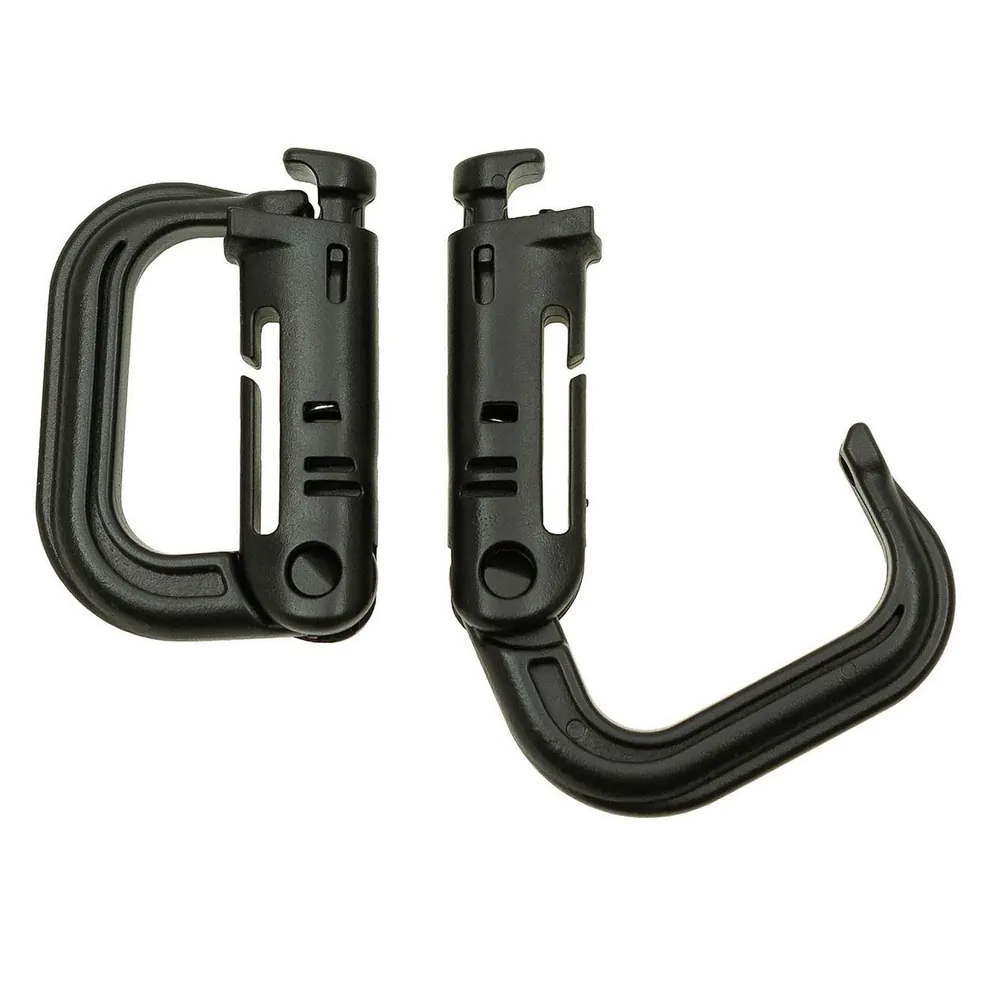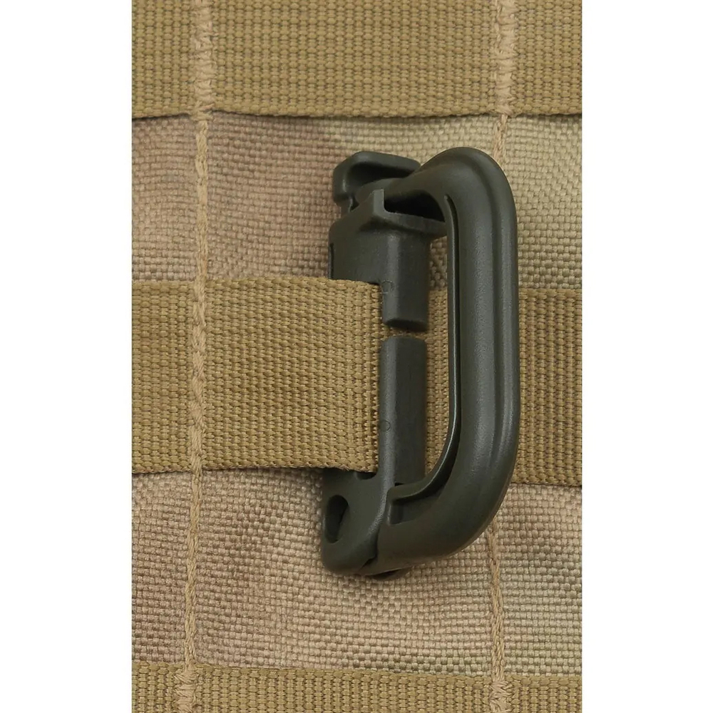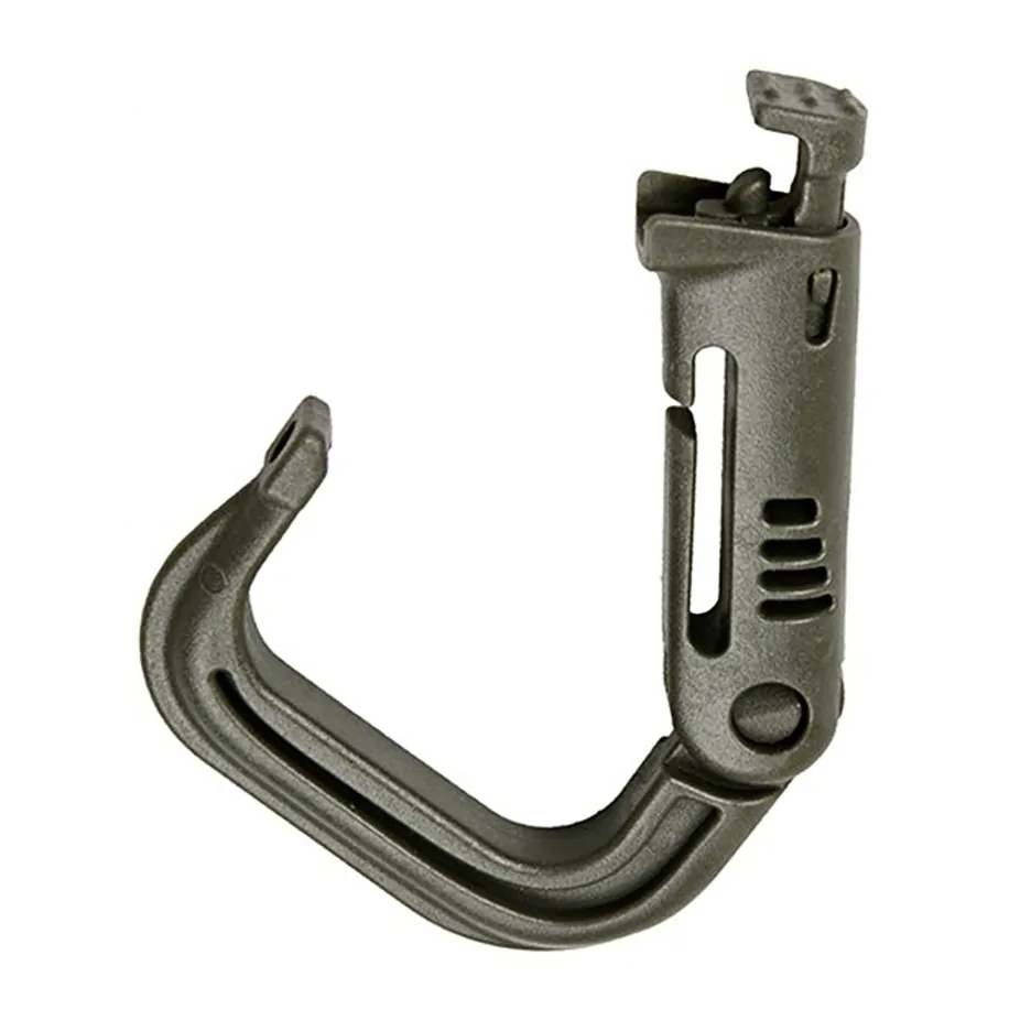 Pełna kompatybilność z systemem MOLLE umożliwia szybkie, pewne i stabilne mocowanie do pasów taktycznych, plecaków, kamizelek czy paneli MOLLE. Karabińczyk wyposażono w blokadę bezpieczeństwa, która zapobiega przypadkowemu otwarciu podczas ruchu lub intensywnego użytkowania.