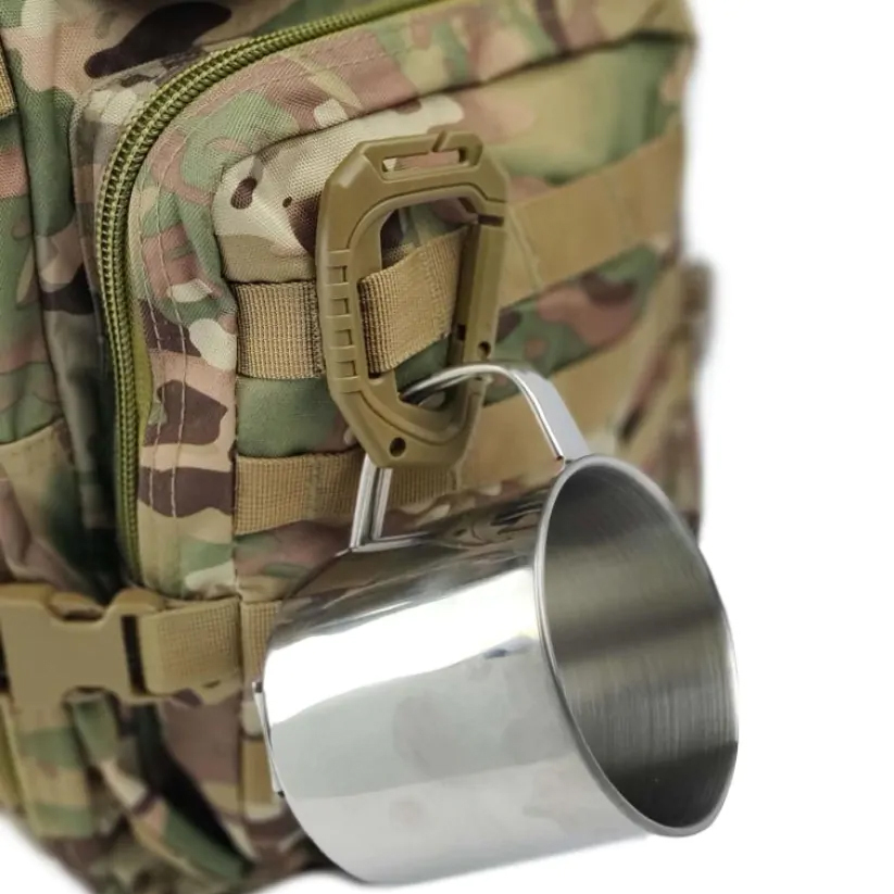 Model wyposażono w dwa punkty mocowania MOLLE – pionowy oraz poziomy, co umożliwia stabilne przypięcie do plecaka, kamizelki taktycznej, pasa, oporządzenia lub szlufek spodni. Kompaktowe wymiary gwarantują wygodę użytkowania bez niepotrzebnego obciążania ekwipunku.
