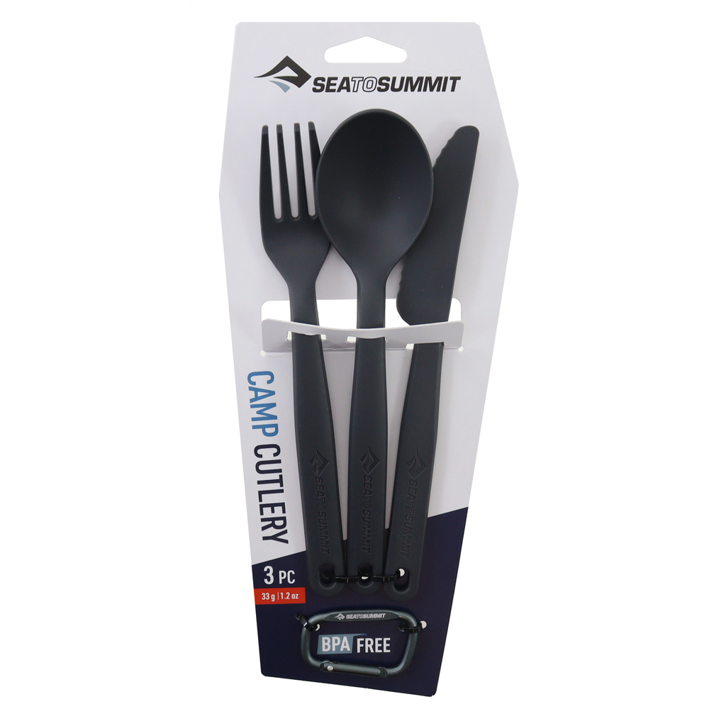 Sea To Summit Camp Cutlery Set 3pc to lekki, kompaktowy i uniwersalny zestaw sztućców turystycznych, zaprojektowany z myślą o campingu, trekkingu, bushcrafcie oraz wszelkich aktywnościach outdoorowych. Pozwala wygodnie spożyć posiłek w terenie – bez kompromisów między wagą, trwałością i funkcjonalnością.