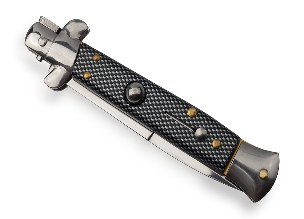 Błyskawiczny nóż sprężynowy wzorowany na klasycznych włoskich sycylijkach to połączenie tradycyjnej stylistyki z nowoczesnym wykończeniem. Dynamiczna linia oraz designerska rękojeść we wzorze typu carbon nadają mu wyrazisty, nowoczesny charakter.