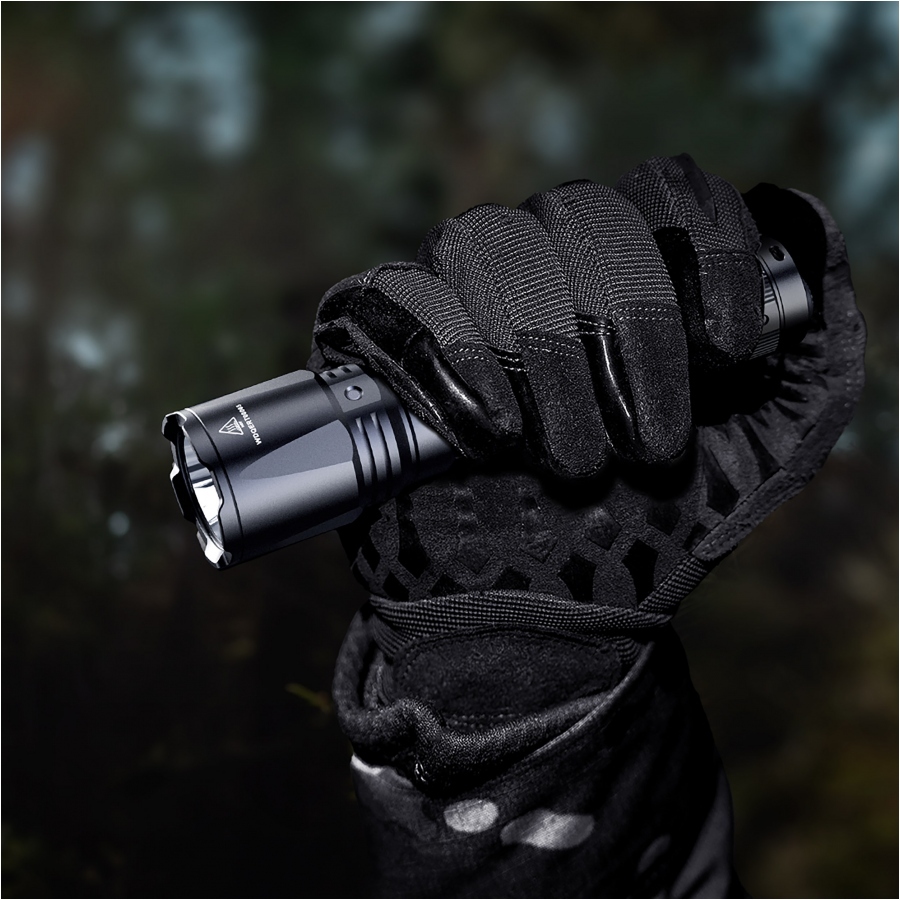 Korpus wykonano z anodowanego aluminium A6061-T6, co zapewnia wysoką odporność na uszkodzenia mechaniczne przy zachowaniu niskiej wagi. Dodatkowe moletowanie poprawia chwyt i zapobiega wyślizgiwaniu się latarki z dłoni. Konstrukcja spełnia normę IP68, co oznacza pełną odporność na pył i wodę oraz odporność na upadki z wysokości do 1 metra.
