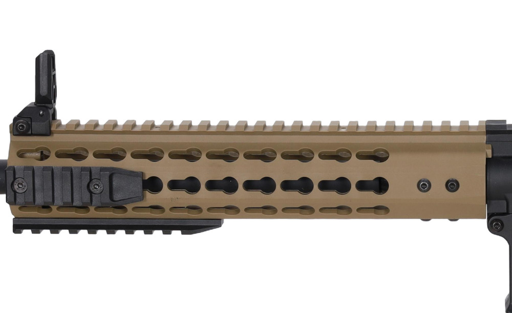- Polimer: korpus, front KeyMod, prowadnica kolby, kolba typu SF, chwyt pistoletowy