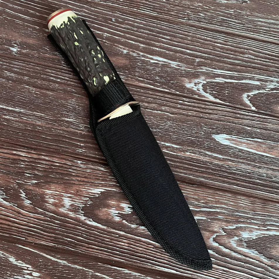 Rękojeść stylizowana na poroże dzikiej zwierzyny nadaje całości unikalnego charakteru, a jej ergonomiczny kształt gwarantuje pewny i komfortowy chwyt. Dzięki temu nóż dobrze leży w dłoni i zapewnia kontrolę podczas pracy.