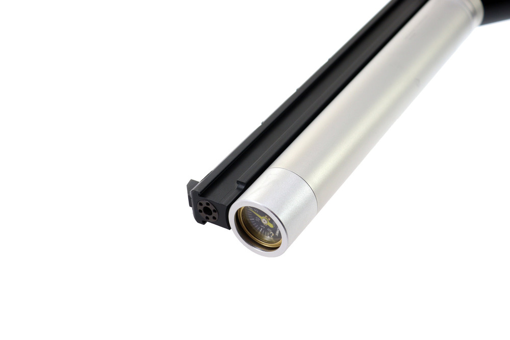 Zastosowany regulator ciśnienia odpowiada za utrzymanie stałych parametrów pracy, co przekłada się na powtarzalność strzałów i stabilność działania. Dodatkowo wiatrówka posiada manometr zegarowy, pozwalający na bieżącą kontrolę ciśnienia.