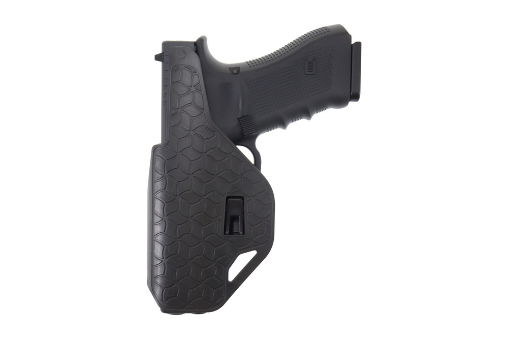 Konstrukcja kabury wykonana jest z wytrzymałego, formowanego wtryskowo tworzywa, które zapewnia wysoką odporność na uszkodzenia oraz długą żywotność. Dzięki precyzyjnemu dopasowaniu kabura stabilnie utrzymuje broń, jednocześnie umożliwiając szybkie i płynne dobycie.