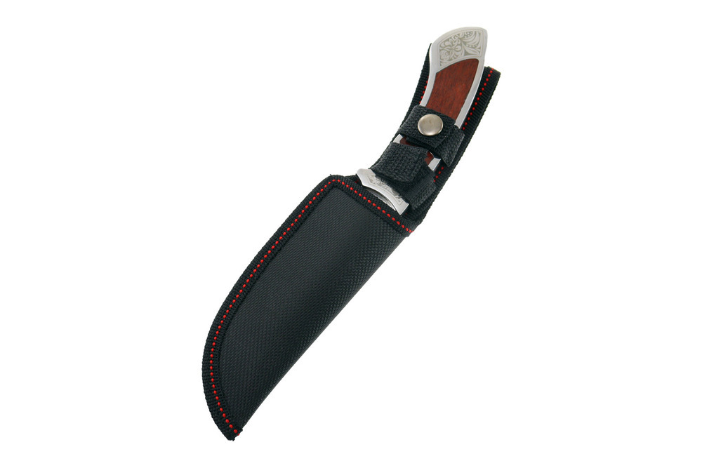 Nóż o nowoczesnym wzornictwie, wykonany z wysokiej jakości materiałów. Charakteryzuje się dużą wytrzymałością i solidnością, a także łatwością ostrzenia.